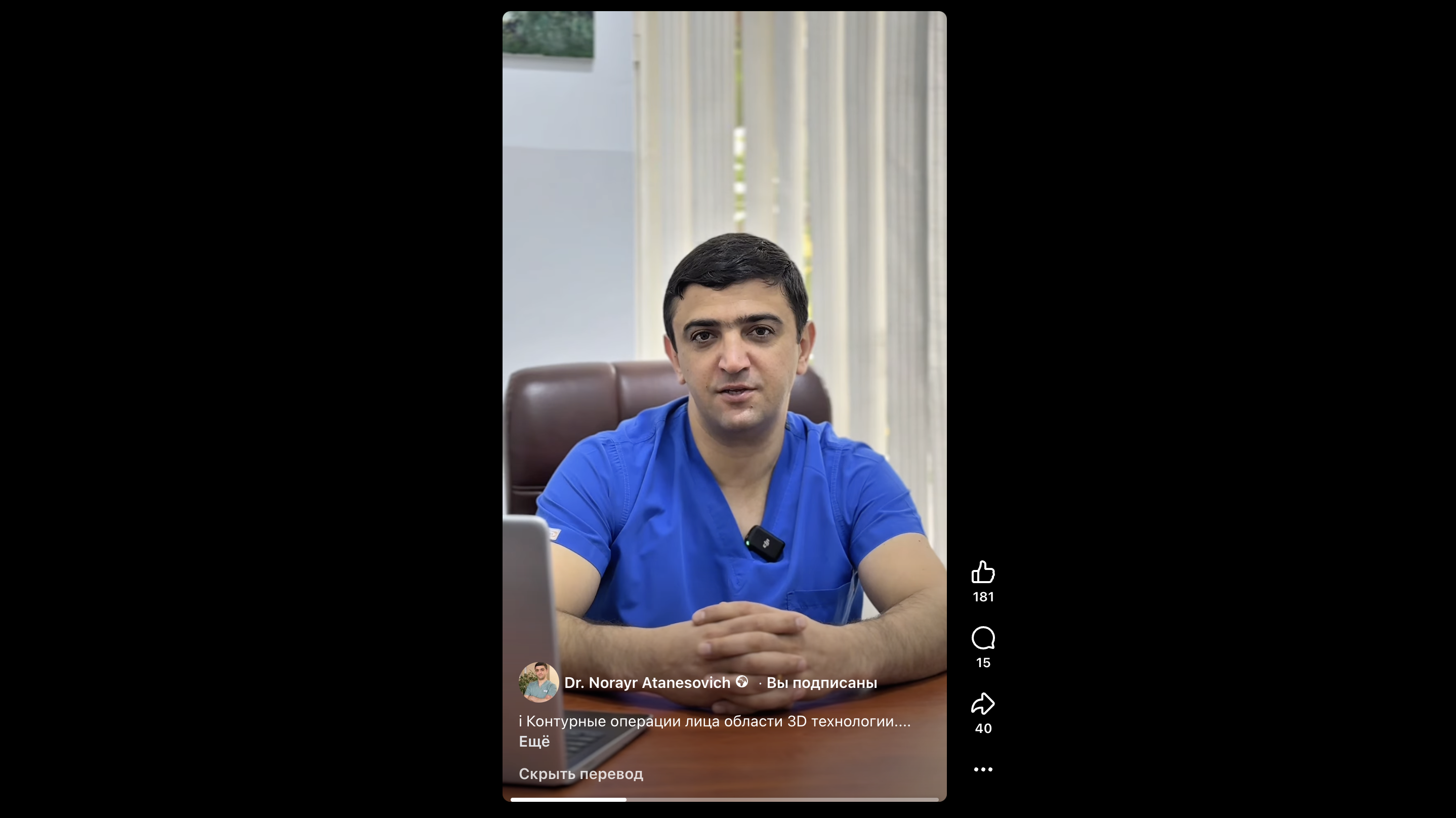 "Норайр Атанесович — профессионал высочайшего уровня. Приехала из Москвы специально к нему. Ринопластика прошла идеально, результат превзошёл ожидания."